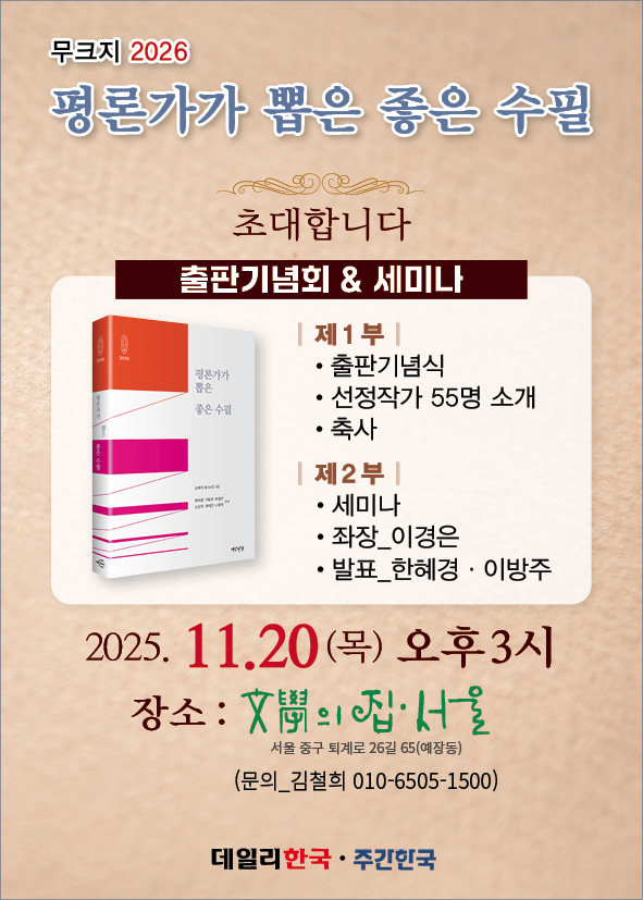 출판기념회 및 세미나는 2025년 11월 20일(목) 오후 3시에 '문학의 집 서울'에서 열릴 예정입니다.