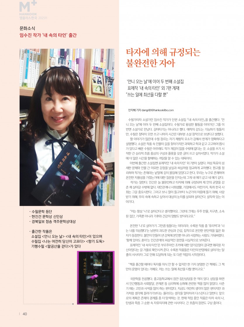 임수진 두 번째 소설집 ‘내 속의 타인’ 출간, 현대인의 불안과 고독 탐구