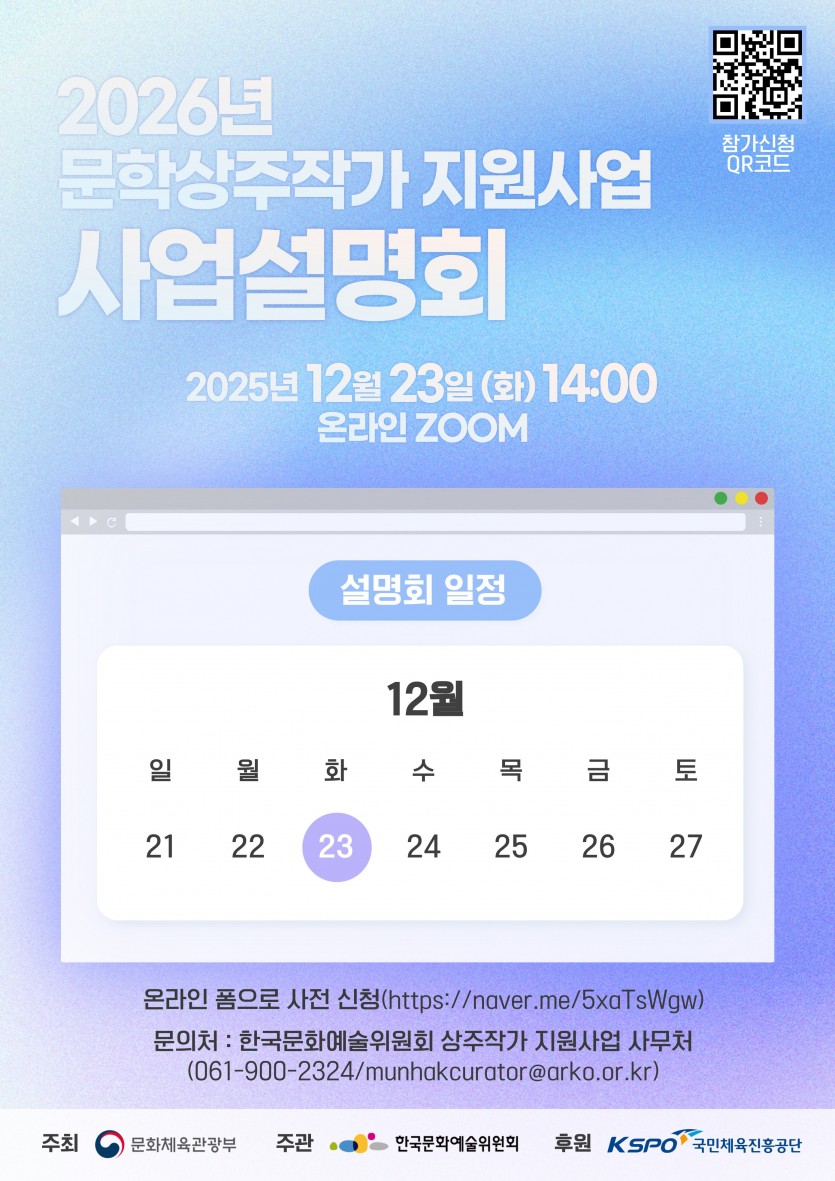 행사명 : 2026년 문학상주작가 지원사업 설명회