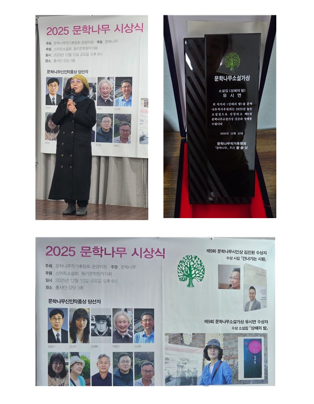12월 12일, 60여 명의 시인, 작가, 평론가, 수상자 및 가족이 참석한 가운데 열린 제9회 문학나무 소설가상 시상식에서 유시연 소설가가 소설집 『상해의 밤』으로 제9회 문학나무 소설가상을 수상했다.