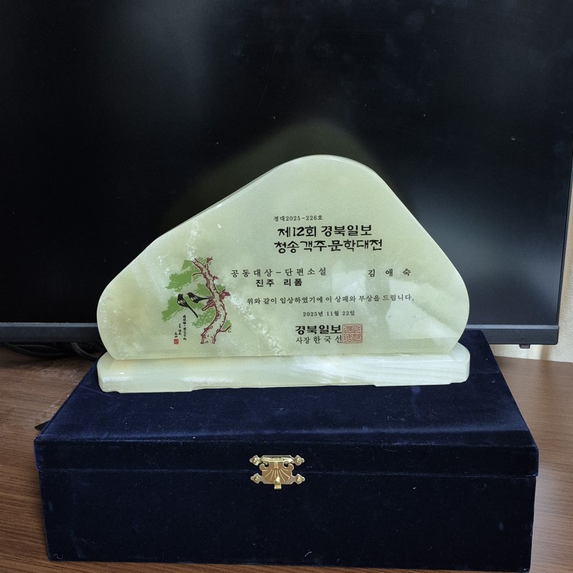 김애숙 소설가가 단편소설 「진주리폼」으로 제12회 경북일보 청송객주문학대전 공동 대상을 수상했습니다.